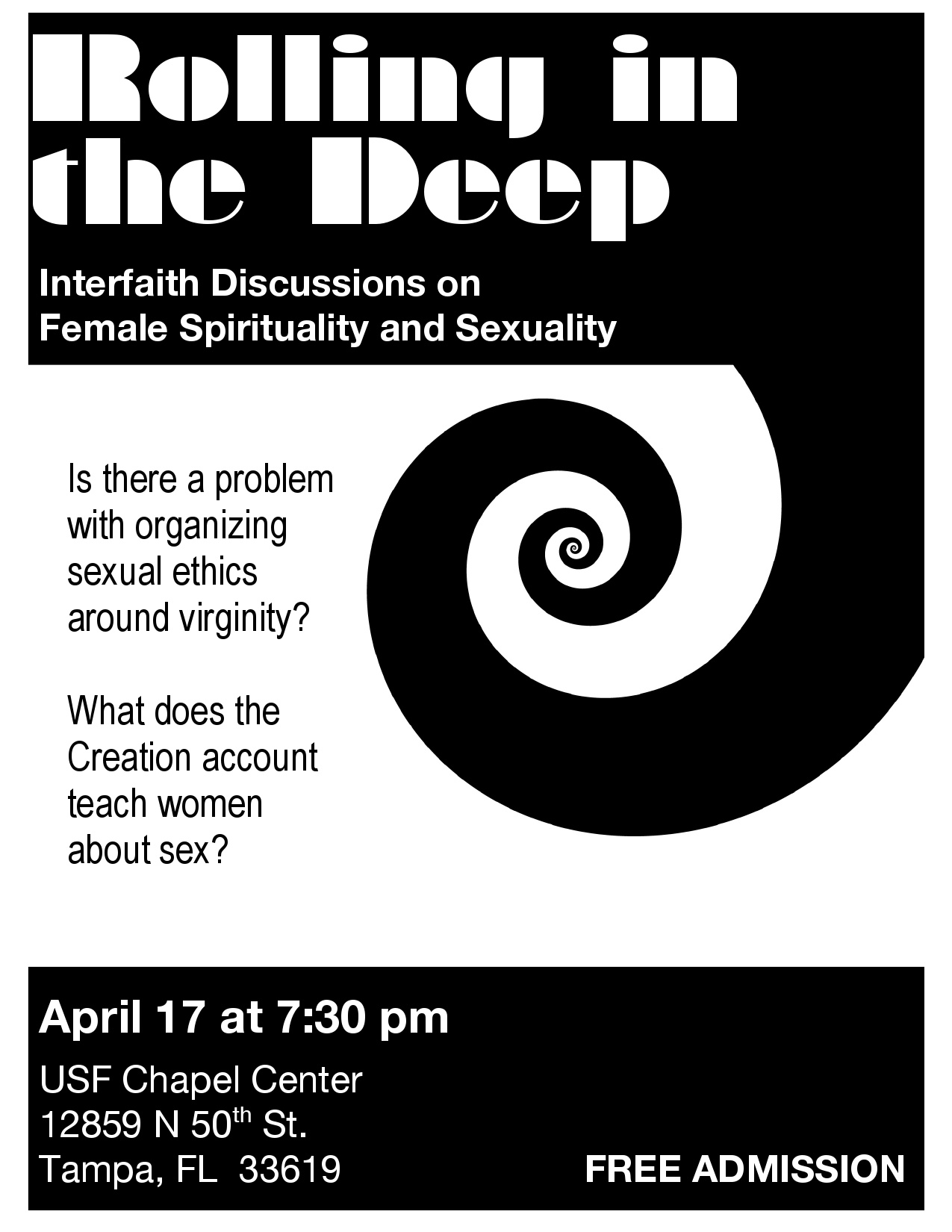 On April 17th at 7:30 the USF Episcopal Center hosted over fifty audience members for “Rolling the Deep: Interfaith Dialogue on Female Spirituality and Sexuality.”